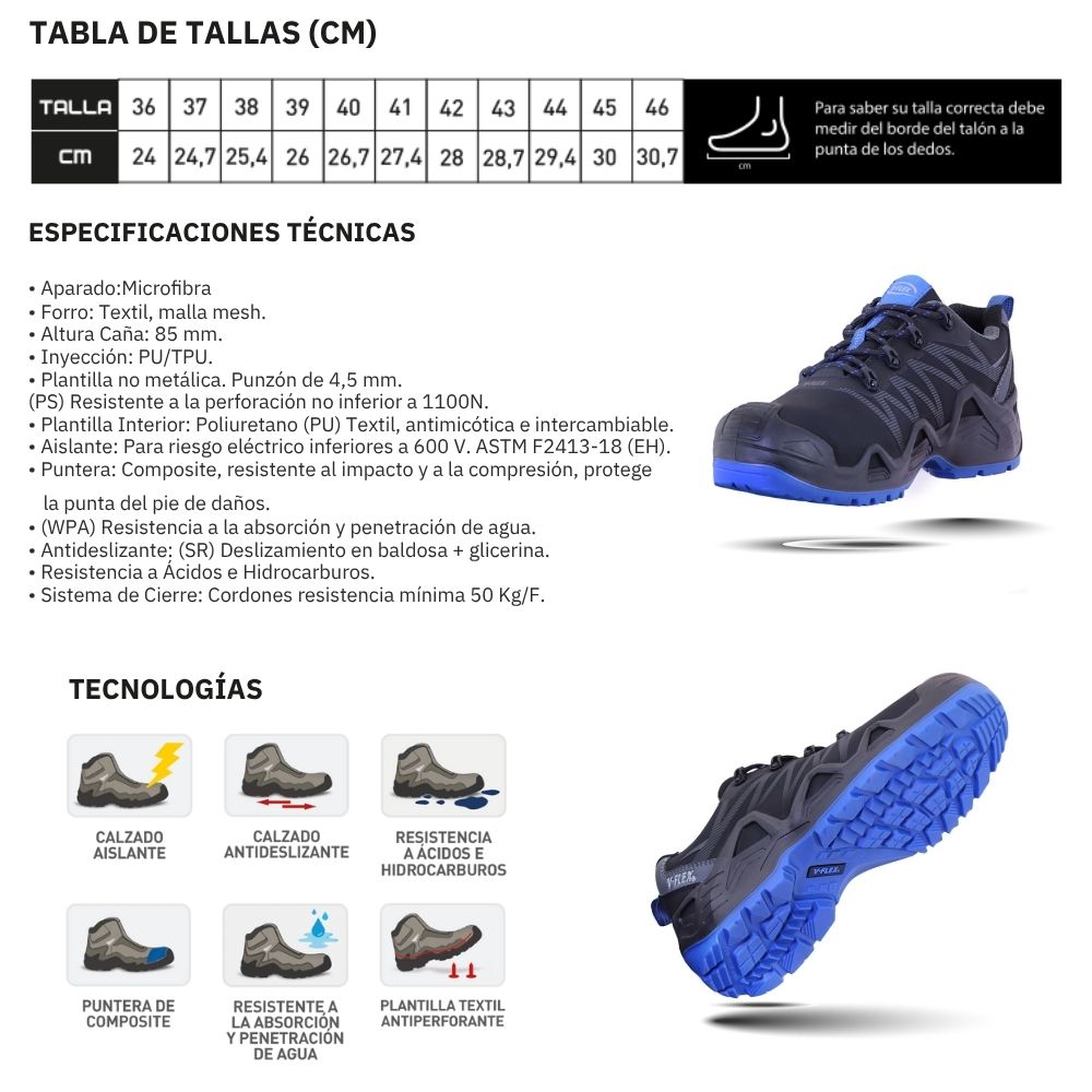Tecnologías: Aislante eléctrico, Antiperforación, Resistente al agua