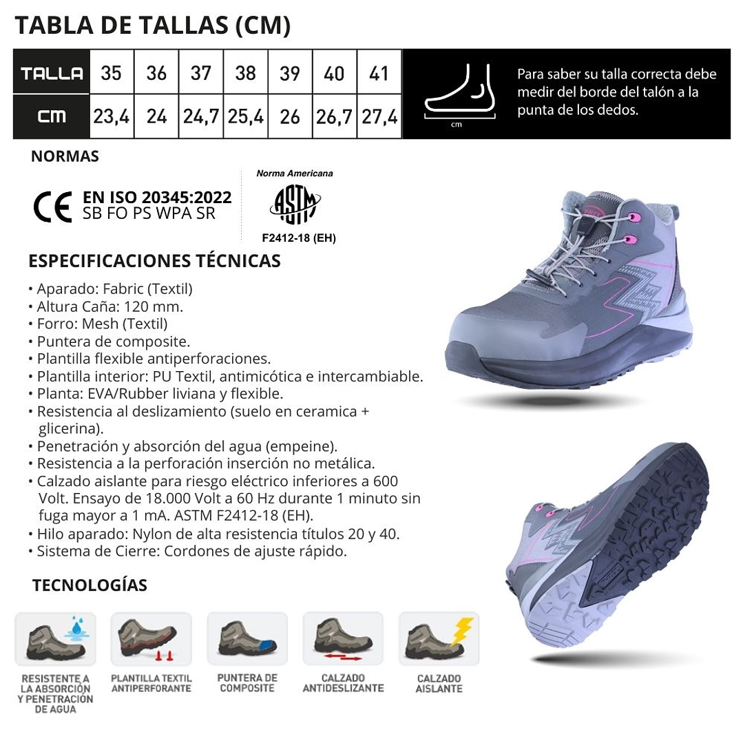 El Botín V-Flex V87 Evalight Gris para Mujer combina seguridad, comodidad y diseño en un solo calzado. Fabricado con textil resistente y caña de 120 mm, ofrece mayor protección en cada paso. Su puntera de composite, plantilla antiperforaciones y suela EVA/Rubber garantizan ligereza, resistencia y seguridad en entornos exigentes como industria, minería y construcción. Además, cuenta con aislamiento eléctrico, resistencia al deslizamiento y plantilla antimicótica intercambiable para máxima comodidad durante la jornada laboral.